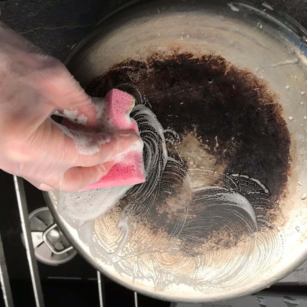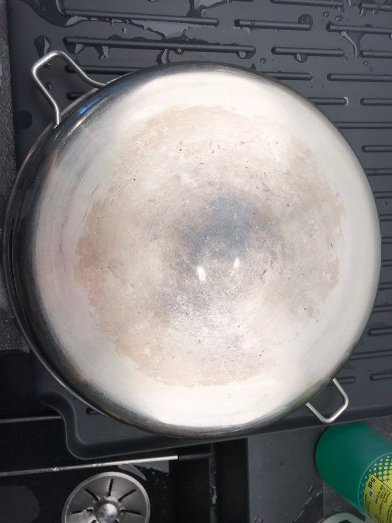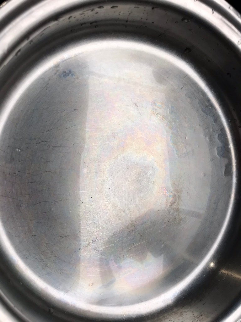 I dag hadde eg fått tak i et skurepulver for stålgryter. På kjøkenet var det fleire testobjekt som stod klart. Her er bilete av det eg testskrubba: